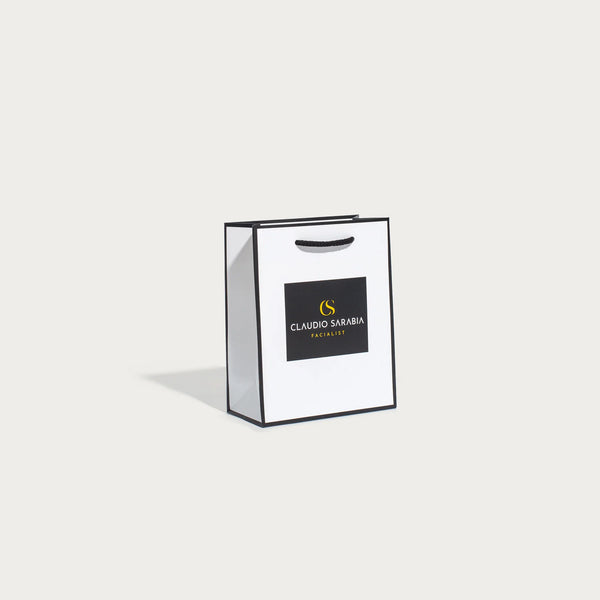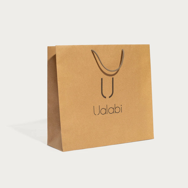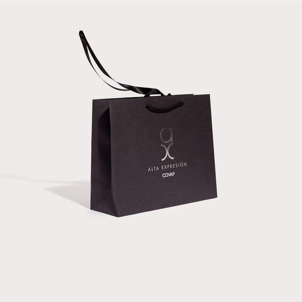 El exterior captiva y el interior sorprende para generar el recuerdo. La impresión Interior es con Offset y el exterior es minimalista con stamping color negro y con el detalle de textura gofrada del papel kraft blanco. Se trata de una de las bolsas de papel de lujo, es decir, sin plastificar, que más nos captivan. Además, la calidad de los componentes, del diseño y de la manufactura, permiten que pueda ser reutilizada muchas veces. El lujo y la consciencia ambiental van e irán de la mano de ahora en adelante.