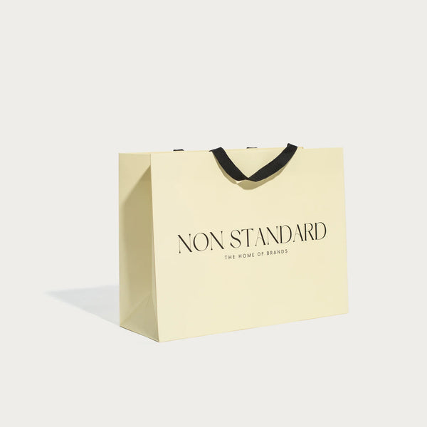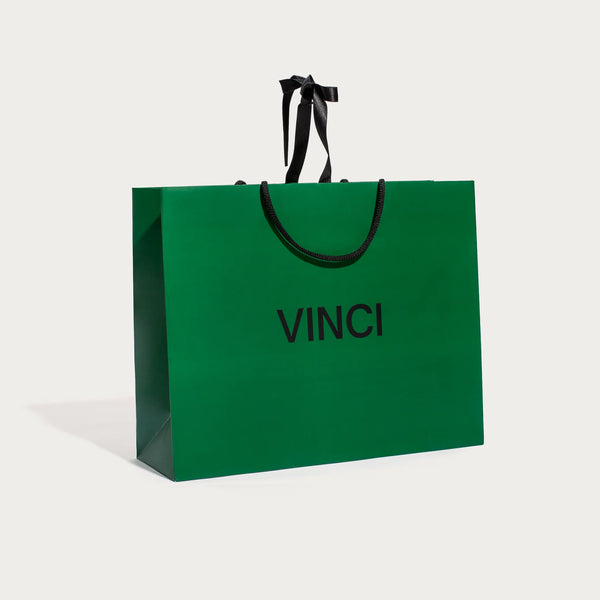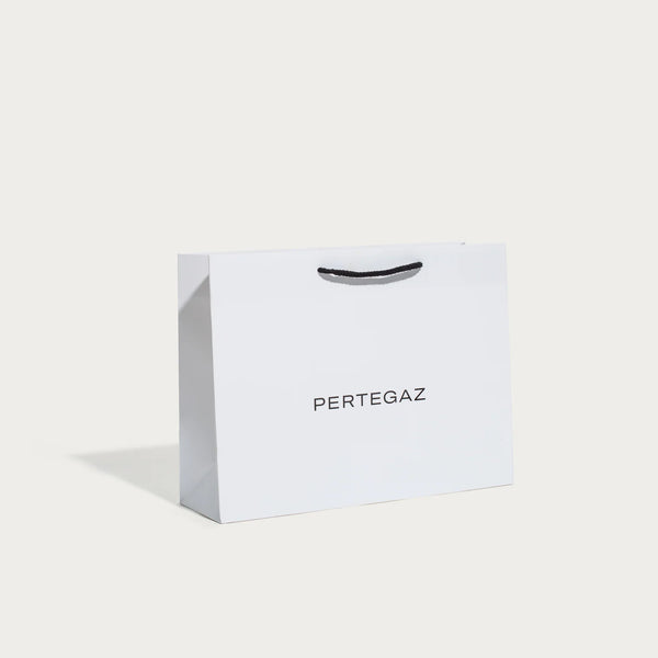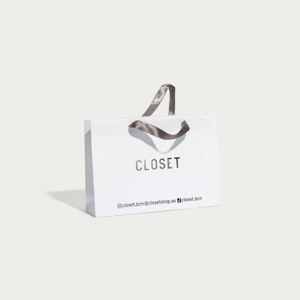 Elegante, minimalista y que enamora con la impresión efecto brillo Stamping plateada y sus cintas de satén largas para colgarse cómodamente desde el hombro. Sin existencia de plastificados para minimizar la huella ambiental. El lujo y la consciencia ambiental combinan muy bien.